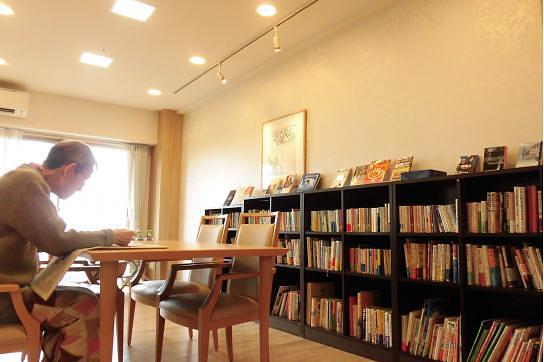 2階多目的ルームに設置した「まどか南与野図書館」は、常時約4~500冊程度の書籍を用意しています。ご入居者様は、図書館で過ごしたり、本を部屋に持ち帰られたり、自由に使っていただいています。ご家族様や地域の方、地域の子どもたちなどにも利用していただけます。