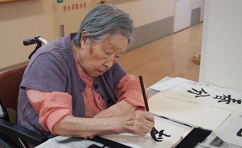 お習字をされているご入居者様 暮らしにハリや楽しみを。多彩な講座やアクティビティを企画しています。