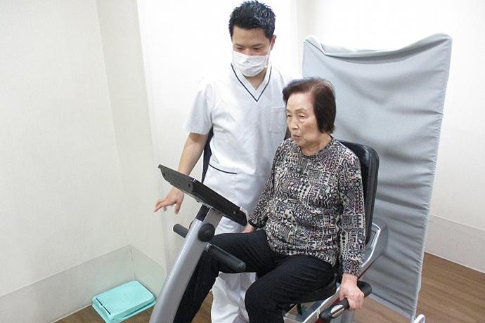 機能訓練指導員が作成する個別のプランのもとに行う個別リハビリでは、お身体の状態やご要望に合わせて、生活の質(QOL)の向上を目指した多様なプログラムを機能訓練指導員がご提案。このほかにも、足腰が不安な方の筋力維持を目的とした体操や、リハビリ機器を使用した運動などを通して機能向上や精神面(こころ)のサポートを図ります。歩行訓練などは、機能訓練指導員の作成したリハビリプランのもと介護職員が行い、安心感のある生活を送っていただけるようお手伝いをさせていただきます。