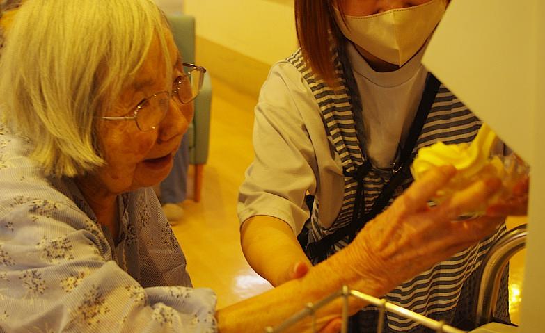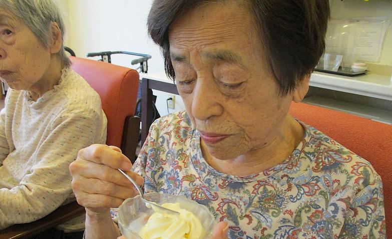 2025.08.26暑い夏に食べたいものと言えば…暑い夏に食べたいものと言えば…アイスクリーム!この日はおやつにソフトクリームをご用意しました。何種類かの味を準備したなかから選んでいただきましたが、「どれもおいしそうで迷うわね」と笑顔に。完食後も「昔は牧場に行ったときにはよくこれを食べてたのよね。懐かしい!」と盛り上がっていました。
