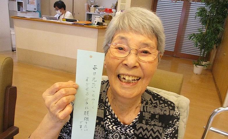 2025.07.31七夕~飾り付け~先日、願い事を書いた短冊や、皆様ご自身で作られた七夕飾りを飾り付けました。グラデーション模様の提灯や和柄の吹き流しなど、色とりどりの飾りが並びます。ご入居者様のT様は、「いろいろな色の飾りがあってすてきね」と笑顔を見せ、ほかのご入居者様と飾りつけをしながら七夕の歌を歌って楽しまれていたご様子でした。