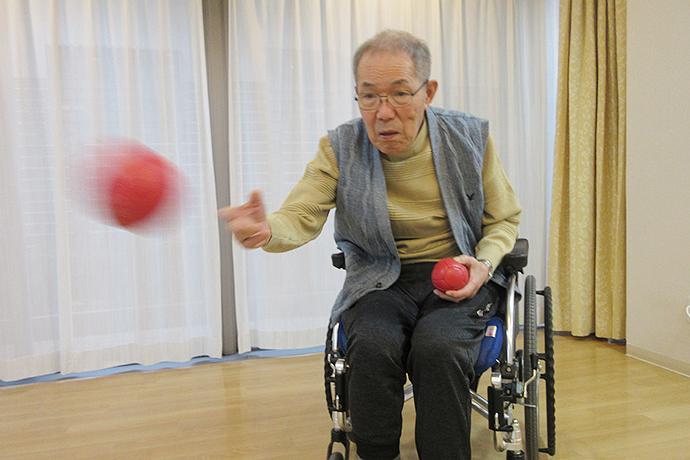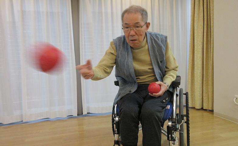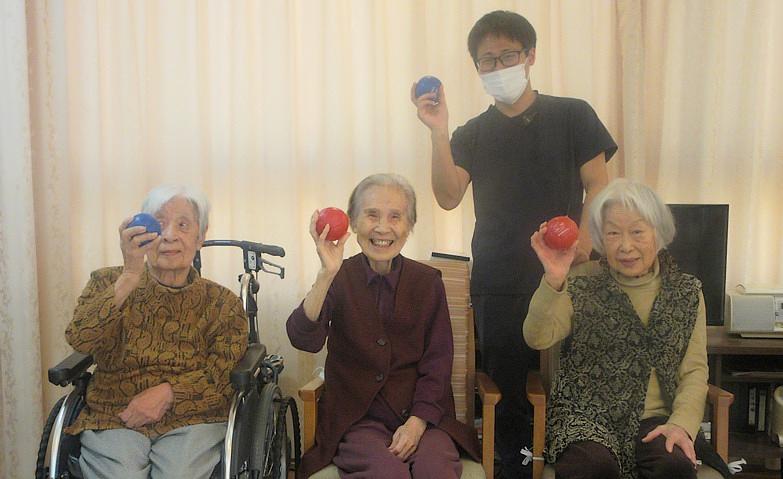 ボッチャ倶楽部では、活動が生活一部となっているご入居者様もおり、活動時間には参加される方々は自主的にリビングに集合されます。準備やプレー中のボール回収、審判などの「役割」はスタッフが担うではなく、ご入居者様のお身体の状態に合わせて皆様に担っていただくようにお願いしています。役割に伴う活動は、楽しみながら身体機能の維持向上を目指せると考えているからです。これからも、ご入居者様にご自分らしく暮らしを送っていただくために、さまざまな工夫をしながらサポートに努めてまいります。