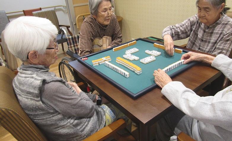 麻雀をされるご入居者様のご様子 暮らしに楽しみを。多彩な趣味活動を実施しております。