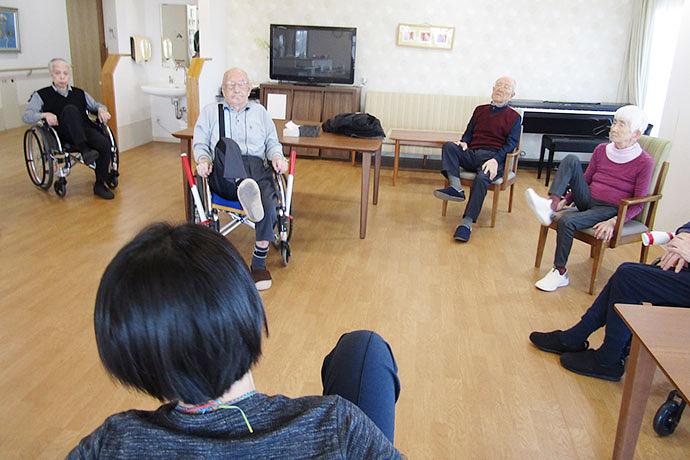 ご一緒に数を数えながら取り組まれるご様子 機能訓練指導員による集団体操