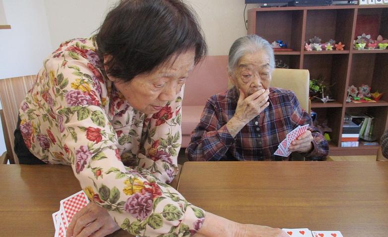 当ホームには麻雀の雀卓があり、ご自由に利用いただけるよう開放しています。麻雀をはじめ、囲碁・将棋などこれまで楽しまれてきた趣味活動を継続いただけるようサポートさせていただきます。囲碁・将棋以外にも、トランプや積み木ゲームなども取りそろえています。ほぼ毎日ご入居者様同士で声をかけ合われ、ゲームを通して交流を深めていただいています。