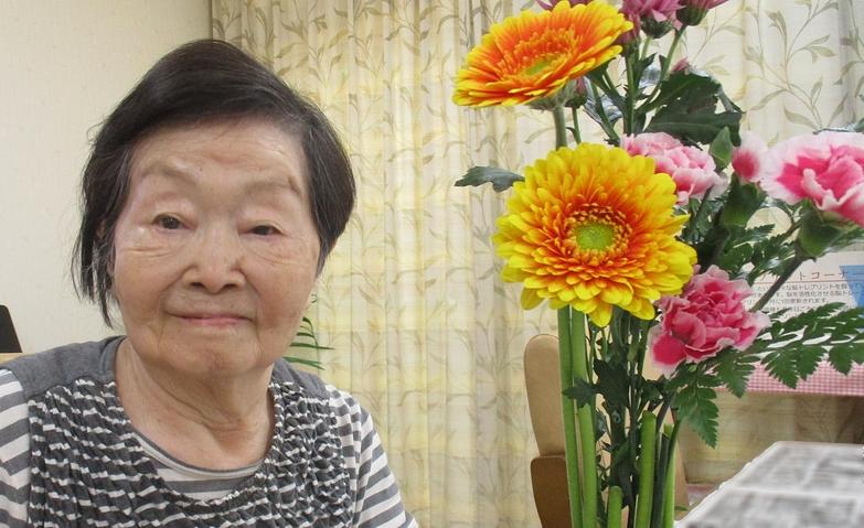 当ホームでは通常毎月フラワーアレンジメントを開催しています。ご参加されたご入居者様は、季節のお花を選定され、想像力を働かせてすてきな作品を制作してくださります。花の香りや彩り、花びらの触感が五感へ心地よい刺激を与え、脳を活性化させることで認知症予防にもつながると考えます。ご参加いただく皆様は毎回楽しそうに会話されながら明るい表情で取り組まれています。