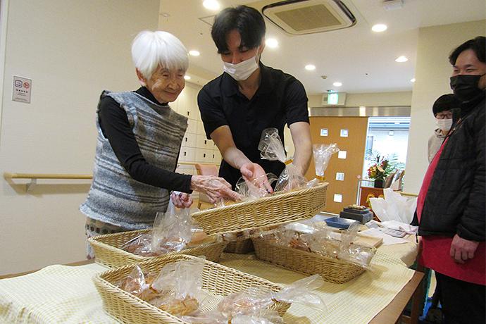 当ホームでは、パン屋さんによる「移動販売」を通常2ヶ月に1回開催しています。次回の販売を楽しみにされているご入居者様も多く、種類豊富なパンの中からどれにしようかと笑顔で選ぶお姿も見られます。ほかにも、外部の方によるイベントやボランティアの演奏会なども頻繁に開催し、にぎやかで充実した時間をお過ごしいただけるよう努めています。