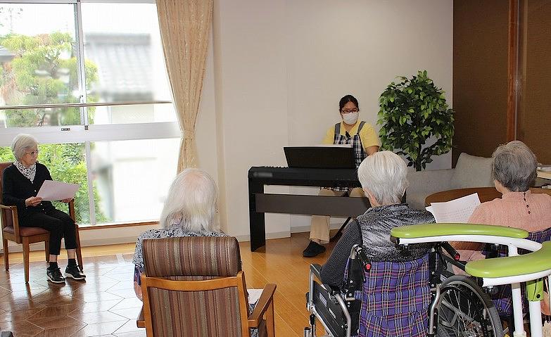 2025.07.02「この歌、子どもの頃に歌ってたでしょ」先日開催した、歌を楽しむ会のご様子です。毎回、皆様楽しみにしてくださっているようです。お隣の方に、「この歌、子どもの頃によく歌ってたでしょ。知っている歌でしょ」と話しかけられたA様。「一緒に歌いましょう!」と楽しそうに歌っていらっしゃいました。
