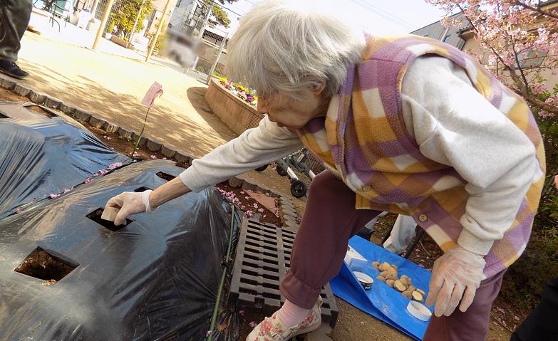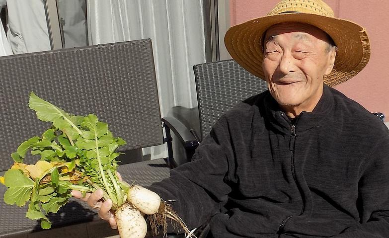 当ホームでは、暮らしの中でご入居者様に「役割」を持っていただくことを大切にしています。中庭にある菜園スペースを活用し、野菜を植えるところから、水やりや雑草の処理、収穫までと、ご入居者様には多くの工程に関わっていただくように提案させていただいています。暮らしの中に「役割」をもっていただくことで、自信や喜び、ご入居者様同士の交流も生まれています。収穫した野菜は、料理アクティビティで夏野菜カレーやスイートポテトなど、おいしく調理し、皆様で楽しく召し上がっていただいています。ホームで活躍しながら、生きがいのある暮らしをおくっていただけるようお手伝いに努めてまいります。