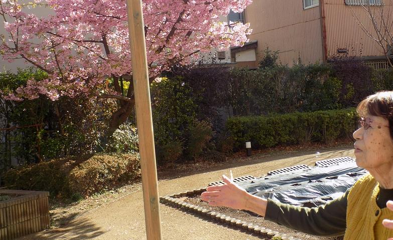 ホーム自慢の広い中庭には、自由に出入りしていただけます。気候のよい時期には散歩や外気浴を楽しむご入居者様の姿も多く見られます。