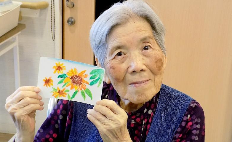 2025.10.29大切な人にすてきな手紙を本日は絵手紙のアクティビティを行いました。想いを込めて大切な方へ、とてもすてきな絵手紙を作成されました。ご入居者様同士で「こんな感じだけど、どうかしら?」「すごいじゃない」と笑顔でお話しされていました。