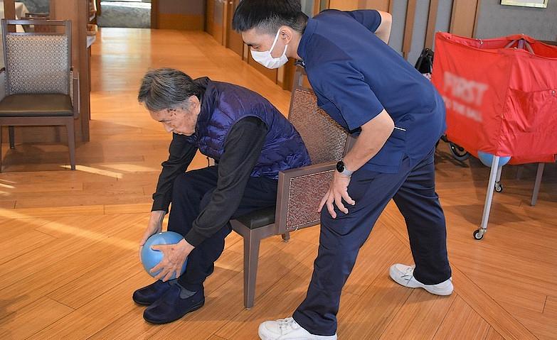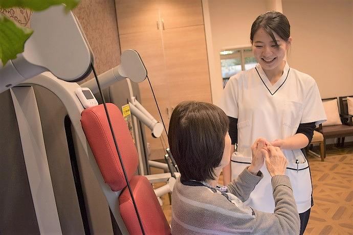 今できることをこれからも続けていただけるよう、身体機能を始め、お気持ちや行動、生活そのものにプラスの変化を生むことを目指し、体操や介護度進行予防運動を実施。また、ホームにはさまざまなリハビリ機器を備えマシントレーニングができる、専用の機能訓練室を設置しています。