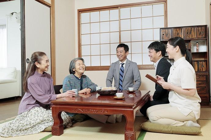 ご自宅でその方を知るアセスメントイメージ まずは「ご本人」を知ることを大切にしています。ホームでどのように過ごされたいかなどのご要望をお聞きします。
