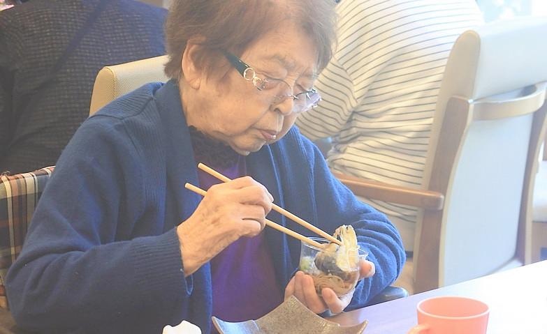 近隣の4ホームが集まったハレの場「くららの台所」。料理好きのご入居者様が集まって料理を振る舞うイベントを定期的に開催しています。ご入居者様が振る舞うメニューを考え、献立から材料購入までご入居者様に主体的に関わっていただき、さまざまなお料理に挑戦していただいています。ご自宅でされていたことをホームでも続けながらいきいきとした暮らしを目指しています。「ハレの場を作ってもらい大歓迎」というお声もいただいています。