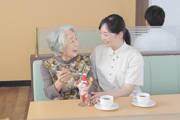 『くららの時間®』※は、一人のご入居者様に一人のスタッフが付きっきりとなって過ごせる特別なひとときとなります。「30分×週1回」「90分×月1回」の2コースから「やりたいこと」に応じてご選択いただけます。例えば、「大好きなスイーツを外食したい」「お花が好き」「買い物にでかけたい」など自由な時間をお過ごしいただけます。