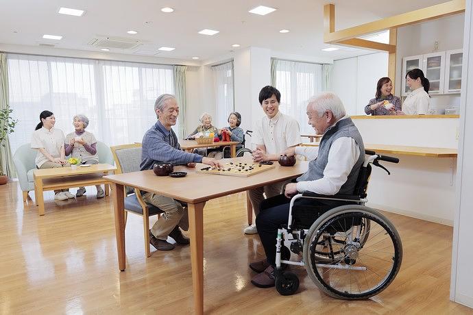 ご自宅のような居心地のよさを実現するため、リビングルーム兼食堂兼機能訓練室で過ごしていただく暮らしを中心に、少人数のグループをスタッフが見守る「ユニットケア」を採用しています。家庭的な雰囲気の中でご生活いただくユニットケアで、ご入居者様の今までの「習慣」と「こだわり」を大切にし、「その方らしさ」に深く寄りそえるよう努めています。ご入居者様の意欲やできることに目を向け、まるで「第二の自宅」のようなあたたかく家庭的な暮らしを目指しています。