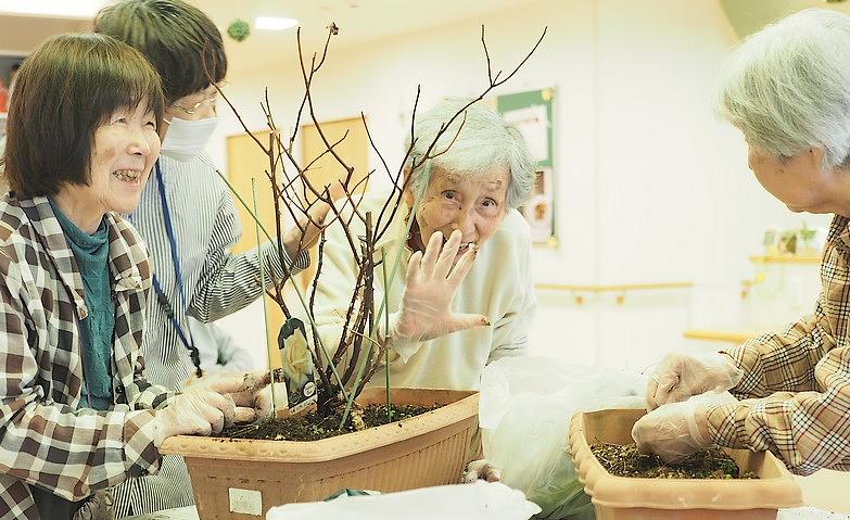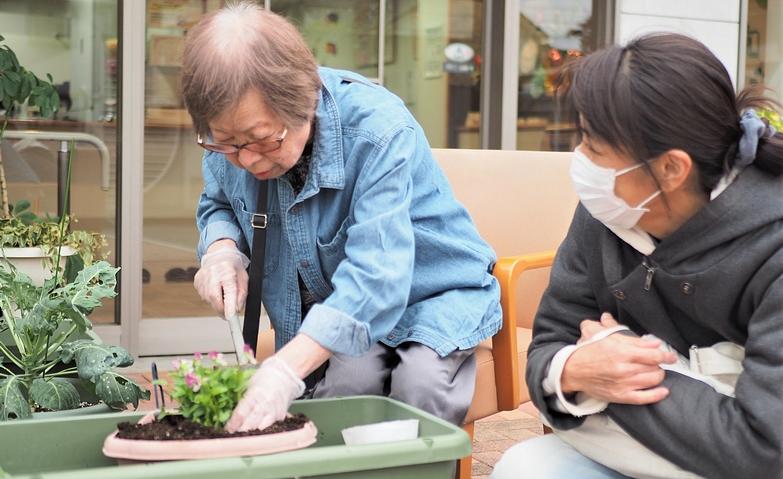 たとえば、「何を植えるか」という企画段階からご参加いただくガーデニング。「この時期なら○○」、「××の土がいいね」など、知識や経験をもとに話し合いをしながら、さまざまなことをご入居者様が決定し、協力し合って実施していただいています。