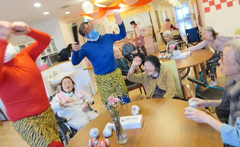 通常週5回、ちぎり絵や歌声談話室、おやつ作り、近隣の学生との交流などのさまざまなアクティビティや、納涼祭やクリスマス会などの季節のイベントを開催しています。
