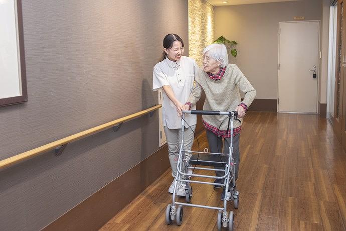 ご自身の好きなことや趣味をあきらめていたとしても、ホームでは実現できるようサポートに努めています。例えば、「自分の足で歩いて買い物に行きたい」「体力をつけて旅行に行きたい」など、その方の想いを叶えるためのリハビリプランを機能訓練指導員がご提案いたします。また、日々のリハビリの成果をお披露目できるご入居者様が集まる「ハレの場」(ご入居者様が主役となって輝ける場)などで挑戦する意欲や達成感なども大切にしています。