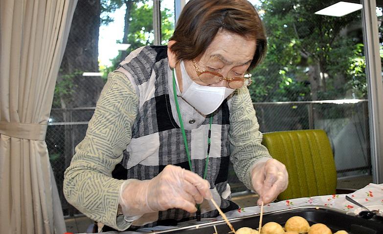 2025.06.25料理でつながるホーム間交流「リハビリホームグランダ常盤台」では、ベネッセの他ホームとの交流を通常毎月積極的に行っています。先日は、近隣のホームのベビーカステラ作りに参加させていただきました。見事な手さばきできれいな円形を作られ、完成後はほかのご入居者様にふるまっていらっしゃいました。「おいしくできてよかったわ」と笑顔を見せてくださいました。