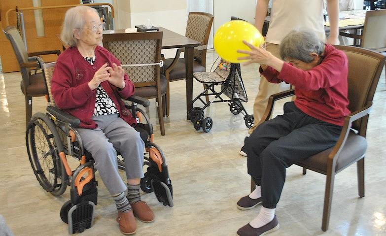 2025.09.03協力し合いながらこの日は風船バレーを行いました。円になり、風船を床に落とさないように次の方にパスをつないでいきます。ラリーを続かせるには、自分一人だけでなく全員で協力し合うことが必要です!初めはむずかしそうにされていたご入居者様も、だんだんとコツを掴まれ、楽しそうに参加されていました。