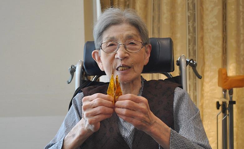 2025.06.25懐かしの折り紙当ホームでは昔ながらの遊びも、手先や頭の運動も兼ねて日々のアクティビティで取り入れています。この日は午後のアクティビティにて、鶴を折りました。「できるかしら」と心配そうにおっしゃっていましたが、一折ずつ丁寧に作られ、きれいな鶴ができあがりました。完成した鶴を手に、すてきな笑顔を見せてくださいました。