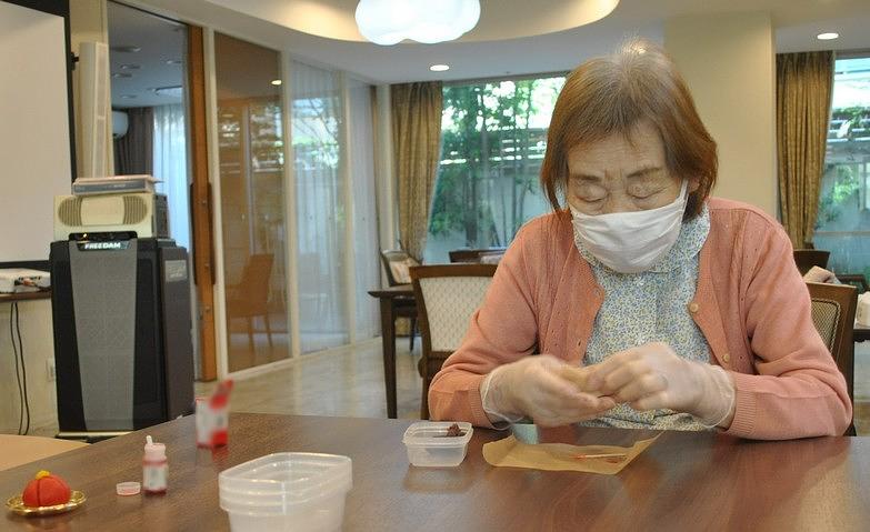 2025.08.06練り切り作り今日のアクティビティでは、練り切り作りを実施しました。生地に色をつけ、練りながらお菓子を作っていきます。皆様、真剣な表情で取り組まれていました。お写真のご入居者様は、「細かい作業で大変だったけど、きれいな形に仕上がりました」と、うれしそうにおっしゃっていました。