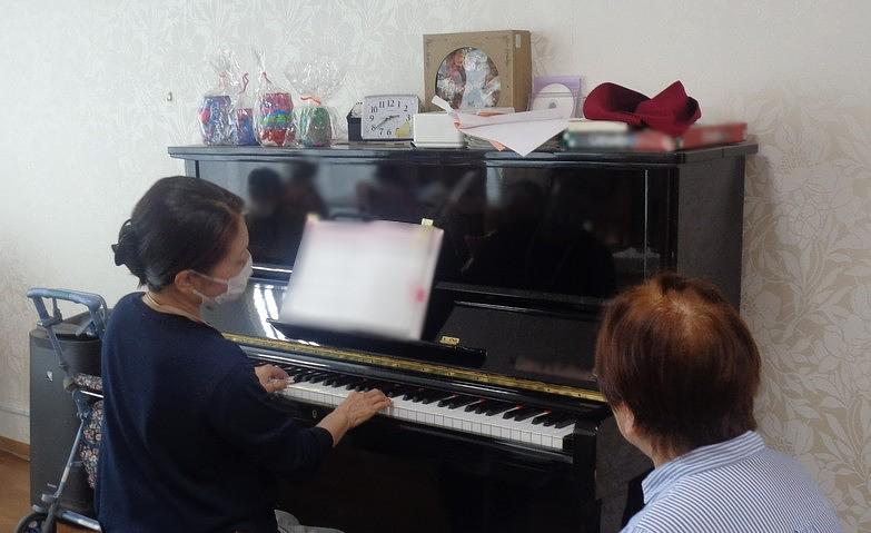 2025.07.24合唱会アクティビティとは別に、スタッフのピアノ伴走による合唱会、フルート演奏、ギター演奏などを開催しています。本日は計画作成担当者による合唱会を行いました。有名な歌謡曲を皆様大きな声で歌ってくださいました。目の不自由な方もリズムにのりながら楽しんでいただけたようです。