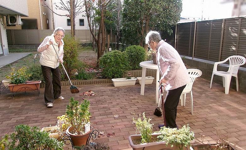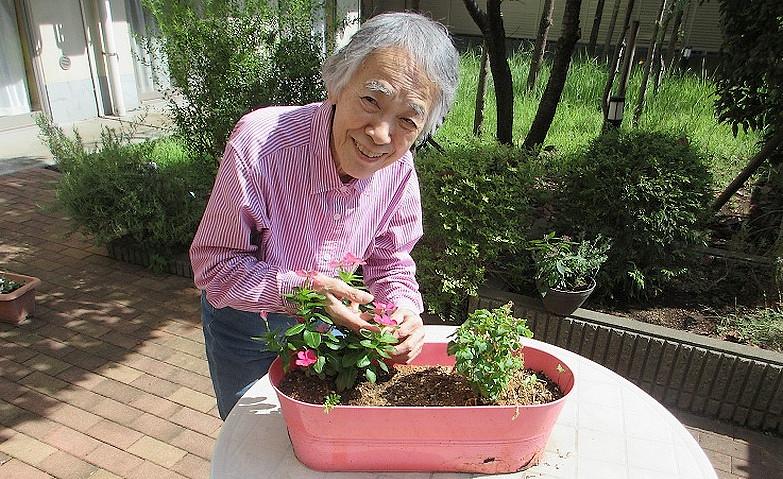 中庭でガーデニングを楽しまれるご様子のご入居者様 自慢の中庭で思いおもいの時間を