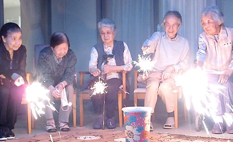 2025.08.03「花火大会」開催!今年もこの時期がやってきました。「まどか立石」で通常年に1度行っている「花火大会」!ご入居者様も楽しみにされており、天候にも恵まれ開催することができました。ご入居者様同士で手持ち花火をしながら「楽しいわね」「こんな花火ができるなんて幸せ」と笑顔の「花」も打ちあがっておりました。皆様の「夏」のよい思い出になったようで、スタッフ一同も喜びました。