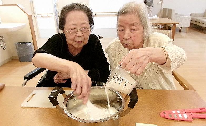 2025.08.17ソフトクリームアクティビティ猛暑が続いていますね。当ホームではソフトクリーム機器を使用し、ご入居者様がご自身でソフトクリームを作り召し上がっていただきました。「暑い中で食べるのは最高」「うまくできなくても自分で作るのは格別」とおっしゃっていました。暑さも吹き飛ぶような笑顔あふれるアクティビティとなりました。