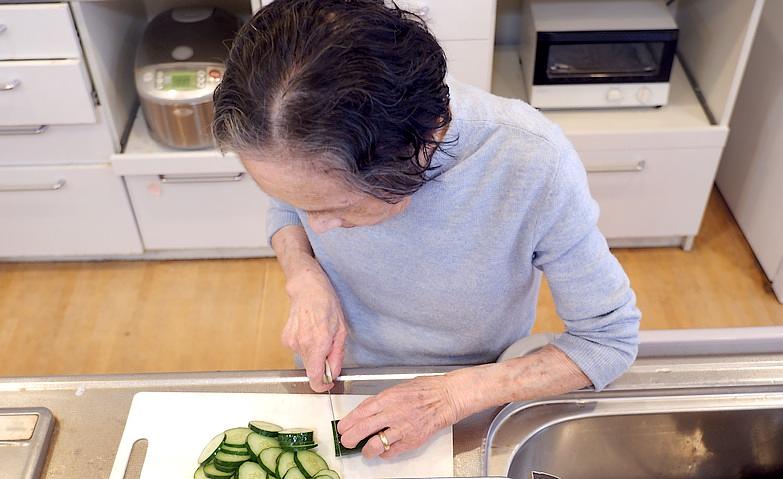 リビングルームで茶碗洗い ホームに入っても今までの習慣を大切に。