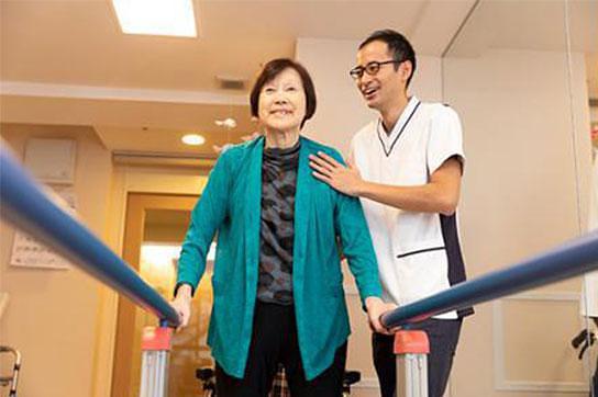 歩行リハビリのご様子 ご入居日から3ヶ月間、1回約20~30分の個別リハビリを1週間あたり最大5回実施※いたします。
