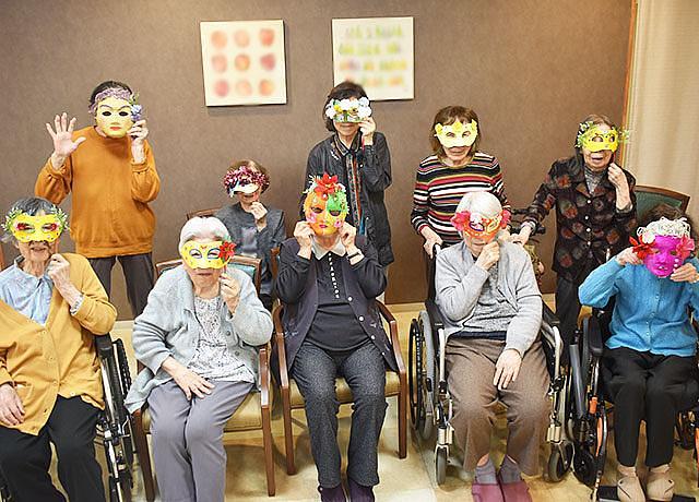 周辺ホームと合同で開催した「マスカレードマスク」づくり 近隣ホームと交流が活発。 「また会えましたね!」と言い合える、 ホームを超えた友情も。