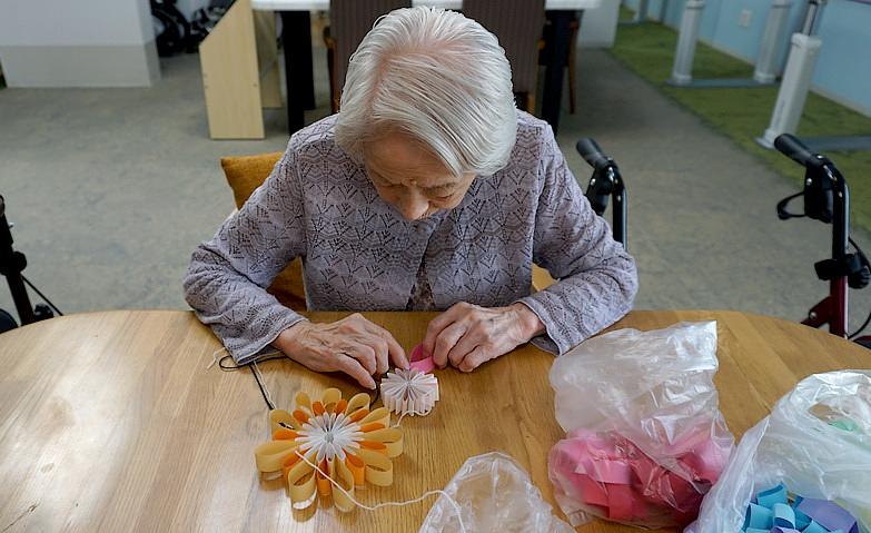 2025.07.30紡ぐ美術展の作品作り~ひとつひとつ丁寧に~8月に外部会場にて開催予定の、川崎市・横浜市・町田市などのベネッセの30ホームにお暮らしになられているご入居者様が制作された絵画などのアート作品を展示する「紡ぐ美術展2025夏」。その美術展に向けて、合同作品を作ることになりました。夏の開催となるため、花火をテーマにつるし飾りを制作しました。皆様は、いろいろな色や花火に合わせた色を使って、ひとつひとつ丁寧に作成されていました。