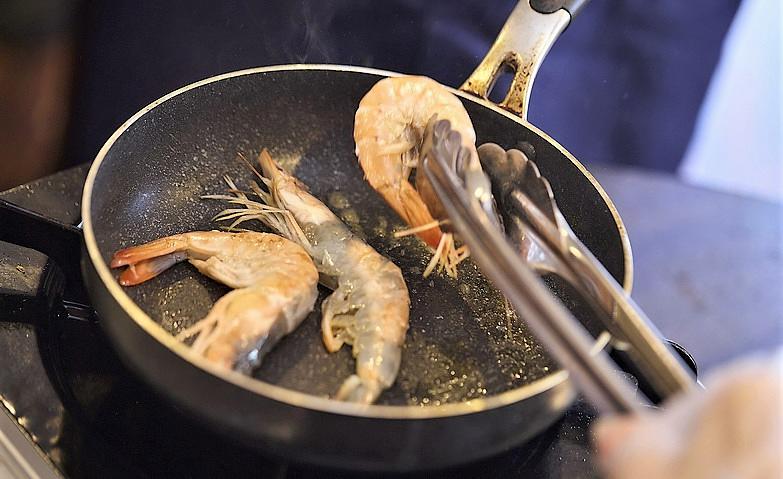 2025.09.22「料理倶楽部」~味覚を刺激する香り~先日、「リミテッド倶楽部」の「料理倶楽部」を開催しました。今回は洋食のコースです。こちらは「紅葉鯛とアサリの南仏風煮込み」を作っているご様子です。「僕はね、包丁が苦手なんだよ。だからエビを焼く係になろうかな?」「じゃあ私は鯛を切りますね」と、楽しそうな雰囲気で調理が進みます。いい香りに誘われ、あちらこちらで「お腹が空いたわね」という声が聞こえていました。