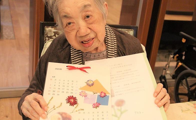 2025.08.31園芸アクティビティ通常毎週水曜日に行っている園芸アクティビティ。今回は9月と10月のカレンダーに、ご自身で飾りつけをしていただきました。ドライフラワーや折り紙を貼ったり、色をつけたり、皆様それぞれ思い思いのすてきなカレンダーができあがっていました。