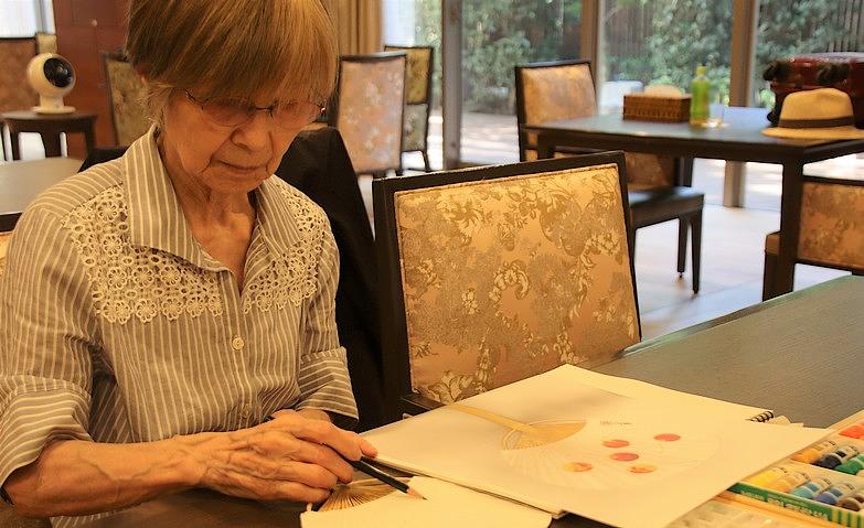2025.08.24「リミテッド倶楽部」~日本画倶楽部 うちわづくり~先日、「リミテッド倶楽部」日本画倶楽部でうちわづくりを行いました。通常毎月1回、外部より日本絵画の先生をお呼びし、皆様はテーマに合わせた模写をされます。今回は、事前に実物をご覧になりながら練習されたさくらんぼを、うちわに描かれました。「もう少し大きく描いた方がおいしく見えるかしら」と皆様はこだわりをもって真剣に取り組まれていました。
