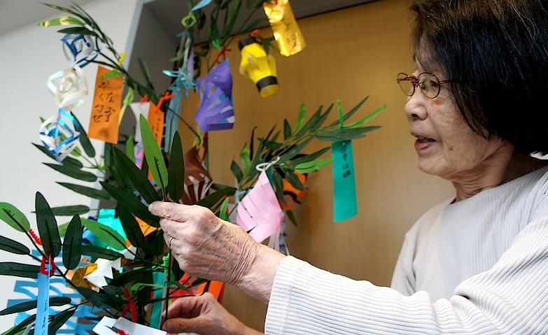 2025.07.15七夕の飾りつけ先日、七夕の飾りつけを行いました。ご入居者様にご自分で書かれた短冊を飾っていっていただきました。季節を感じることは大切な刺激になると考えています。「願い事、叶うといいわね」「よく見えるとこに飾っておくわ」と笑顔でお話しされながら、夏を感じていただけるアクティビティになったようです。
