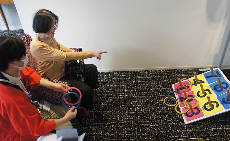 2025.09.20夏祭り~輪投げ~待ちに待った夏祭りの日!屋台のひとつ目は輪投げです。輪が入った数に応じて、プレゼントをご用意させていただきました。こちらのご入居者様は最も得点が高く、スタッフ特性のキーホルダーをお渡しさせていただきました。鞄につけて喜ばれていたのが印象的でした。