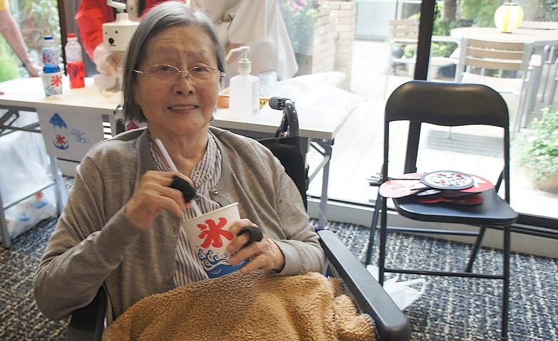 2025.09.25夏祭り~かき氷~お祭りといえばかき氷!ということで、ご入居者様にはお好きな味のかき氷を召し上がっていただきました。輪投げをされるご入居者様を応援しながら召し上がったり、ホーム自慢の中庭でお花をご覧になりながら召し上がったりと、皆様には夏らしさを感じていただけたようです。