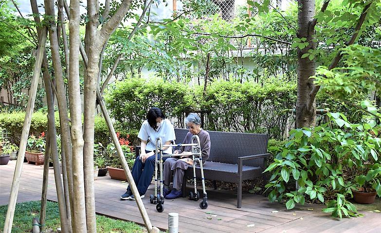 ウッドデッキや中庭など緑あふれる住環境で、都会にいながら季節の移ろいを感じながら、お過ごしいただけます。また、多彩なアクティビティをご用意しており、中でも、近隣のホテルや庭園などに車でドライブに旅行気分でお出かけするドライブアクティビティはご入居者様に好評です。