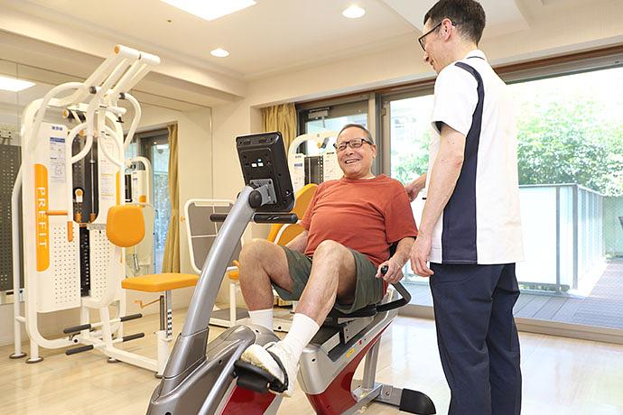 「家族とでかけたい」「歩けるようになりたい」など、お一人おひとりの「ありたい姿」を目指して、機能訓練指導員がその方に合わせて無理のないリハビリ計画をご提案。必要に応じて福祉用具の選定や居室の環境整備も行いながら、筋力・体力の低下予防や機能維持に努めています。また、ご自身で行うためのトレーニングメニューや、生活の中でスタッフと一緒に行う生活リハビリプランなどのご提案もいたします。