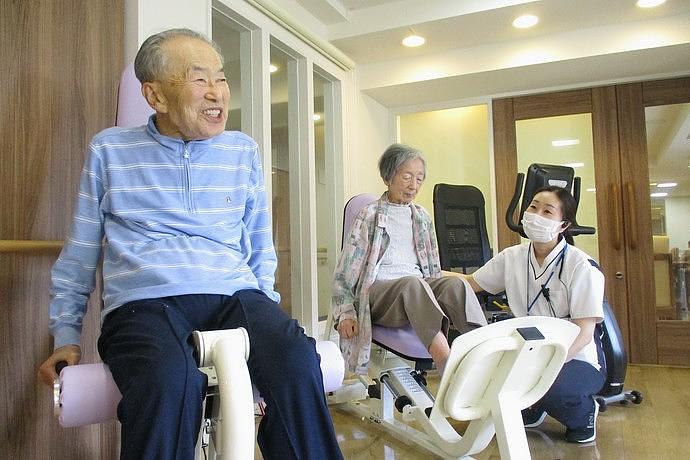 機能訓練指導員がお一人おひとりのお身体の状態やご要望に合わせて、個別のリハビリプログラムをご提案いたします。1対1で行う個別リハビリの時間もご用意し、運動機能の維持・向上を目指します。リハビリには介護職員も関わらせていただいており、機能訓練指導員監修のリハビリ内容を介護職員が生活リハビリとしてサポートさせていただいております。