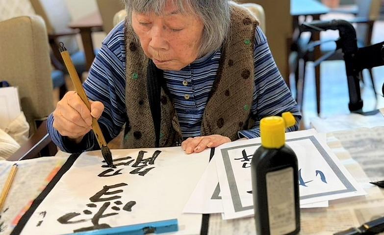 絵を描きたい、いろいろな物を作りたいというご入居者様の想いから生まれた「グランダ武蔵野美術サークル」では、季節を感じるものをモチーフにした絵葉書をほぼ毎月制作。繊細な色の調合、滲ませ方と真剣に取り組まれているご様子のご入居者様方ですが、会話も弾んでいるご様子。できあがった絵葉書を写真に収め、1年経ったらカレンダーに生まれ変わらせたりと、多彩な使い方をされていらっしゃいます。同じご趣味の方同士、やりたいことを継続して行っていただけるよう、企画や環境づくりのサポートをさせていただきます。
