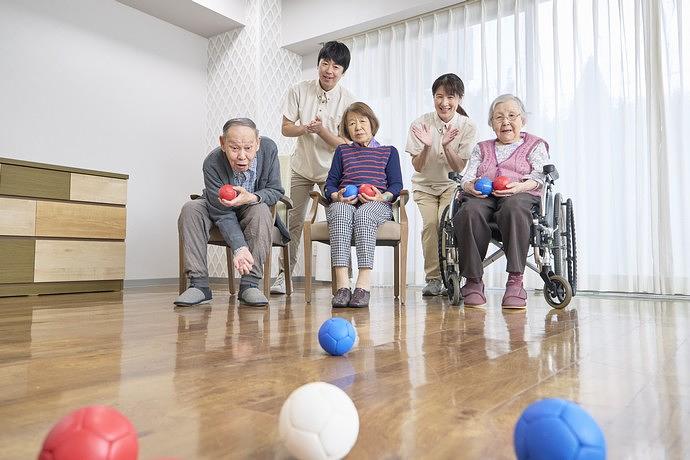 ボッチャで真剣なご様子のご入居者様 多彩なアクティビティで毎日に彩りを。 文化的活動や運動などさまざまな活動を行っています。