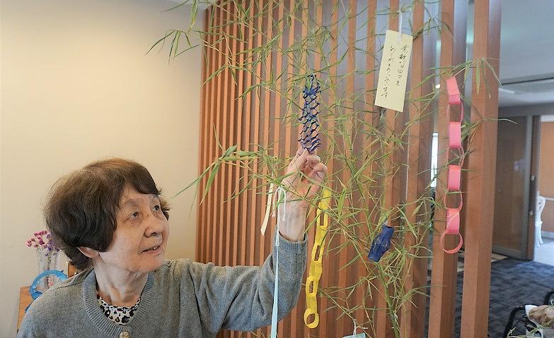 2025.07.07星に願いを今年も七夕の季節がやってまいりました。当ホームでは、毎年のように笹の葉をエントランス付近に飾り、ご入居者様の願い事を短冊に書いていただいています。「健康でいられますように」「いつまでも平和が続きますように」など、さまざまな願い事を短冊に書かれていました。どうか皆様の願い事がかないますように、スタッフ一同願っています。