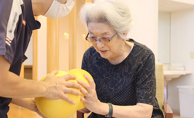 ご入居者様に今できることをこれからも続けていただけるよう、心身機能をはじめ、お気持ちや行動、生活そのものにプラスの変化を生むことを目指し、「介護度進行予防運動」を実施いたします。また、ホームにはリハビリ器具を備えた専用の機能訓練室を設置。機能訓練指導員の指導のもと、運動に取り組んでいただけます。