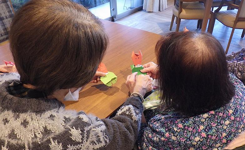 当ホームでは、身体大きく動かすアクティビティ以外に、通常夕方に机の上で指先を使うアクティビティを実施しています。夕方になるとそわそわと落ち着かなくなる方への不安緩和にもつながると考えています。