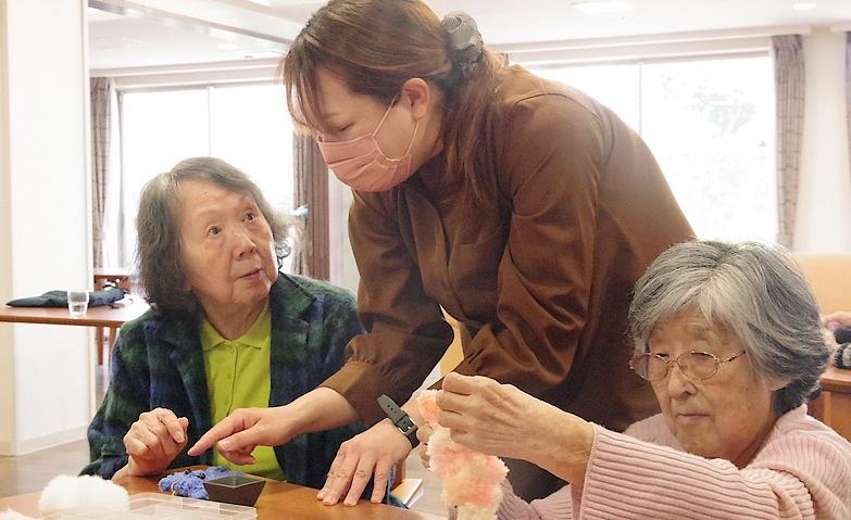 当ホームでは、理学療法・作業療法・言語聴覚の3つの視点から皆様のお身体状態をリハビリ面からサポートさせていただきます。転ばれてしまったことのある方でも、ご自身でトイレまで行けるよう歩行練習をしたり、ご本人様が長年続けてこられた習慣を続けるためのお身体状態の維持のための運動をしたり、お食事の際に「むせ」がないかなどを機能訓練指導員が評価しています。介護職員とも協力しながら、その方に合った無理のない楽しく続けられるようなリハビリをご提案いたします。